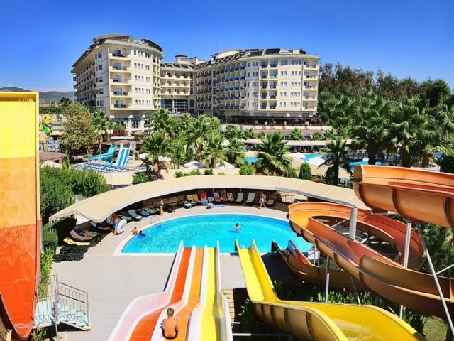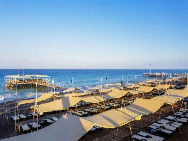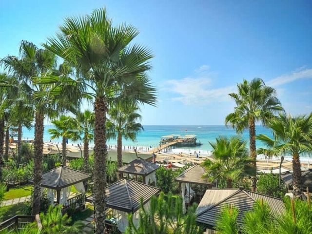 The 5 Star Mukarnas Spa Resort Hotel is located in the Okurcalar area of the popular summer resort of Alanya on the beautiful Turkish Riviera. Situated right on the beach, overlooking the sparking blue Mediterranean and close to the Alara Brook, this superb Ultra All-Inclusive hotel makes an ideal base for couples and families with 425 attractive rooms with modern amenities. Guests to the Mukarnas Spa Resort Hotel can discover marvellous beaches, explore delightful villages nearby and experience real Turkish hospitality. For a memorable holiday in Alanya, the Mukarnas Spa Resort Hotel is a perfect choice!