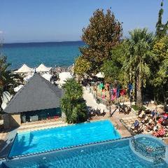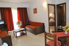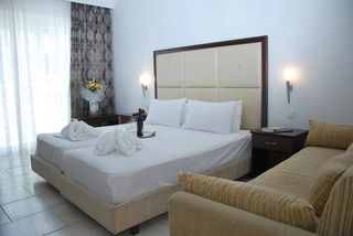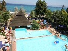 The hotel is situated in the Hanioti area, one of the most popular tourist resorts in Halkidiki. The hotel is just 200 metres away from the centre of the village of Hanioti, where guests will find restaurants, tavernas and bars. Macedonia International airport is approximately 100 km from the hotel. This vibrantly coloured beach resort offers top-quality services and modern amenities. The communal areas are air-conditioned and the hotel offers a lobby with a 24-hour reception desk, a hotel safe and Internet access. There is a children’s playground for younger guests and the whole family can wine and dine in the restaurant. All rooms offer comfortable accommodation featuring a fully-equipped kitchen, an en suite bathroom and a satellite TV. Leisure facilities include two swimming pools.