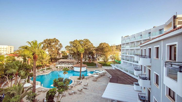 This apartment hotel is located in Protaras, not far from the beach.This traditionally-decorated hotel and apartment complex offers breath-taking views out over the free-form swimming pool with water fountains, gardens and landscaped surrounds. The air-conditioned complex has a total of 94 apartments (64 one-bedroom and 30 studios). Facilities include a lobby, 24-hour reception, hotel safe, currency exchange facility, mini-supermarket, hairdressers’ salon, bar, nightclub, games room, TV room, children’s room, restaurant and Internet access. Room and laundry services are provided and younger guests are sure to enjoy the children’s club.