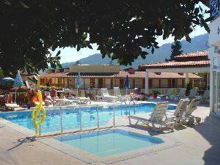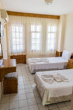 This small, family-run hotel is located on the Mediterranean coast in the resort of Kemer, 45 kilometres west of the city of Antalya. The public beach is approximately a ten-minute walk away while shops, restaurants and cafe bars are all in close proximity to the hotel. The hotel boasts a relaxed atmosphere and personal service. Guests might go for a refreshing swim in the outdoor pool and sip a drink in the bar after a long day of exploring the area, then enjoy dinner in the onsite restaurant.