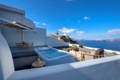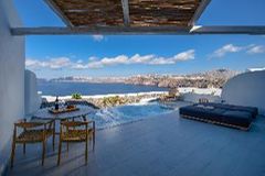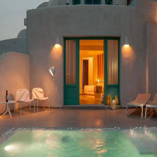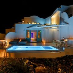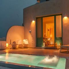 Located 10 minutes walking distance from the excavations of ancient Akrotiri and 150 meters from the nearest beach, Neptune Luxury Spa Suites is a new built complex offering uninterrupted views of the Volcano, Caldera and Aegean Sea. The serenity of the landscape, the personalized service, the elegant and luxurious accommodation combined with high quality services make Neptune Luxury Spa Suites the perfect place to spoil yourself.Our philosophy is simple. Each guest is unique so should our services be!Thus each suite is a private modern spa. The interiors have been inspired by the nature and traditional Cycladic architecture combined with modern design and the latest amenities. They all feature a private hamam, hydro massage and aroma therapy in the bathroom while Deluxe spa suites come with an outdoor private heated pool and Premium spa suites with an outdoor private plunge pool.