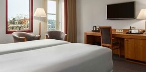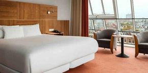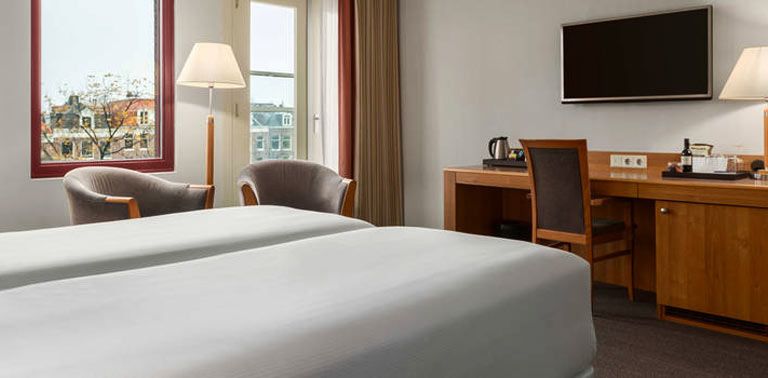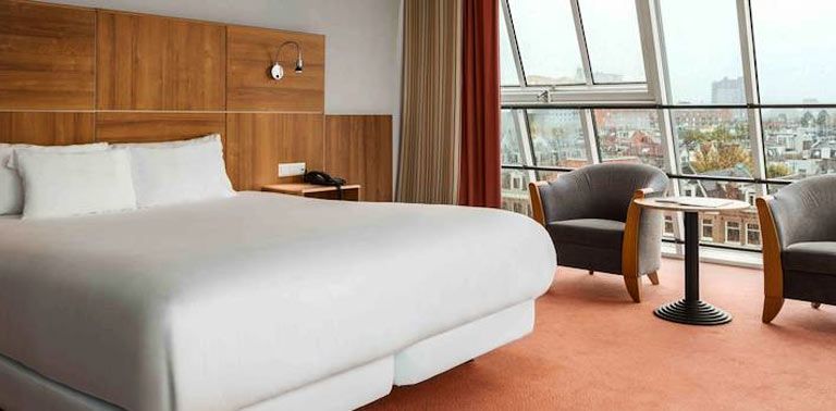 This hotel lies close to the Museumplein. The beautiful contrast with the classical buildings and the direct proximity of the historic centre of Amsterdam make it a magnificent location. A shuttle bus service conveys guests to Amsterdam’s Schiphol airport. The hotel has 163 rooms. The rooms are equipped with air conditioning, a phone and Internet access. Further Hotel’s facilities include a safe, a bar lounge and breakfast restaurant and a gym. Laundry and dry cleaning services are on offer as is 24-hour room service, babysitting. There are facilities for the disabled. The rooms each feature a bathroom with a hairdryer, a phone, TV, Internet access, air conditioning and a hire safe. There are coffee making facilities, a fridge, an ice machine, ironing set. Rooms offering access for wheelchair users are available. Guests may select their breakfast from the buffet.