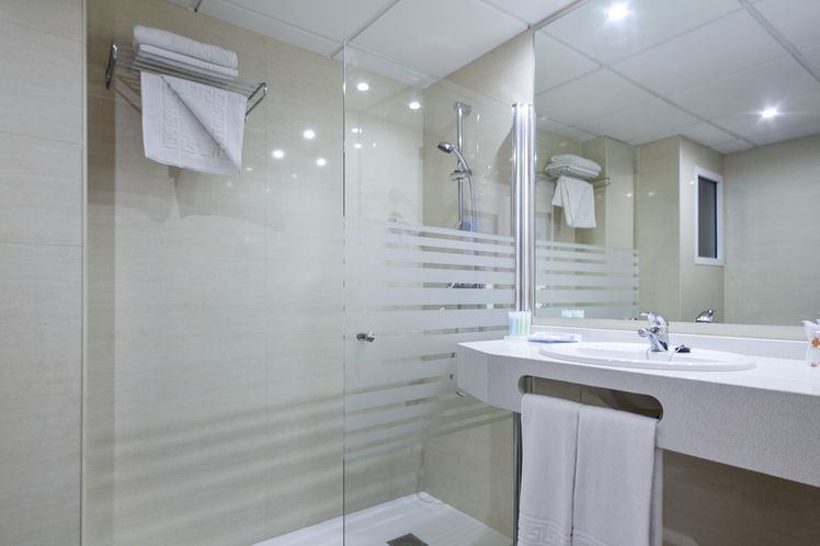 Oasis Park Hotel Salou is located approx. 450 m from the public sandy beach “Capellans”. The nearest bars and restaurants are located directly next to the building. The holiday centre is only around 200 m away. A supermarket and other shops you reach after approx. 100 m. Reus airport is about 12 km away. In the surrounding a disco (approx. 100 m away), a leisure and aqua park (approx. 2,5 km) and a golf course (approx. 2,5 km) offer entertainment during the best time of the year. Near the beach there is a promenade where you can go for a stroll. The hotel has a 24h reception, a lobby bar, Wi-Fi, a lift, a hairdresser, a jacuzzi, showers and changing rooms, parking spaces (for a fee) as well as a TV lounge with satellite TV. In the outdoor area of the property you will find a garden as well as a seasonally open pool, where sun loungers and sun umbrellas are available for free. For children there is also a separate children’s pool with a water slide (type open/tunnel slide). Furthermore, you can relax outdoors on a terrace. Inside the hotel you can use a heated indoor pool. For very young guests, highchairs can be provided. You can store your luggage in the hotel’s storage room. The energy supply is 220 Volts. If you want to explore the holiday region, you can use the car rental service close to the hotel (extra fee). In addition, the hotel sells tickets excursions. Due to its barrier-free facilities , such as barrier-free entrances, the hotel is also suitable for wheelchair users.