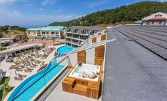 Approx. 2 km from sandy beach is located the hotel Orka Sunlife Resort And Aquapark , linked by a free shuttle service. At the beach, there are sun umbrellas and sun loungers for a fee available. The tourist centre is about 600 m away. The town Mugla is around 140 km away. It is 600 m from the hotel to the nearest bars and restaurants. Also the nearest disco is around 600 m away. For mobility during your holiday, there are a taxi rank (around 10 m away), a bus stop (approx. 50 m away) and a car rental company. For medical treatment in emergencies there is a hospital around 8 km away. The hotel and airport are linked by a shuttle (for a fee).