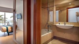 Guest rooms; Singles, Doubles and Junior Suites, some with sea views, are modern and generous in space, interiors of soft white contrast with bold pastel tones, drapes and fabrics to complement the décor, comfortable furnishings on cool tiled flooring and modern amenities for your convenience; features include a private furnished balcony, air-conditioning, soundproofing, en suite complete bathroom with bathtub, shower and hair dryer, payable WiFi internet, satellite 32” TV, direct dial telephone, desk with chair, mini fridge, safe box rental, rental of ironing facilities and other payable extras available.