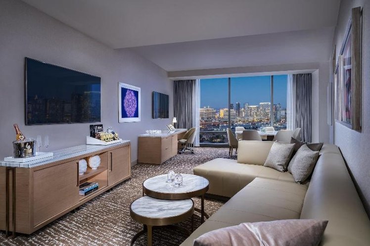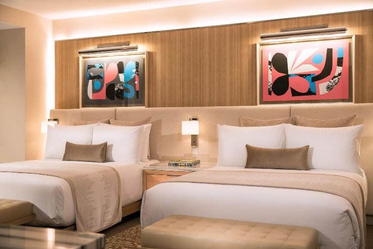 The Palms Casino Resort Las Vegas is city hotel and casino resort offers access to all that makes Las Vegas an exciting place to visit. Guests will be able to experience the effortless elegance of updated decor and the convenience of a central location. The hotel boasts fantastic facilities both for high class relaxation and for quality entertainment possibilities. It is ideal for business travellers and holidaymakers alike. Located in the Fantasy Tower, the brand new Resort/Executive Rooms express a strong architectural sensibility paired with a sophisticated yet inviting, neutral color palette and layers of textural warmth, complete with dramatic views of Las Vegas through the floor-to-ceiling windows. Rooms feature new white oak cabinetry, custom-designed furniture and polished chrome hardware as well as new bathroom updates like a walk-in shower in richly striped Zebrino marble and large backlit vanities. Each room contains an assortment of prints of curated contemporary art from known artists like Thrush Holmes, Gary Stranger, Cody Hudson, Sandra Chevrier and Carlos Rolon. Additional amenities include a 65-inch flat screen television, Bluetooth stereo, electronic safe and 300 thread count Egyptian cotton linens for ultimate comfort.