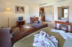 If you wanted your pick of the bunch, you won’t be disappointed by the wealth of room options at the Panareti Coral Bay. Starting with the studio kitted out for two guests, expect a cosy double bed, fully furnished kitchen, flat screen TV and inner courtyard views. In terms of decor, cool marble floors make those hot days more bearable, while its warm wooden fittings make you feel right at home.
