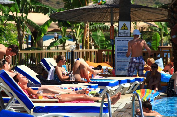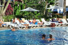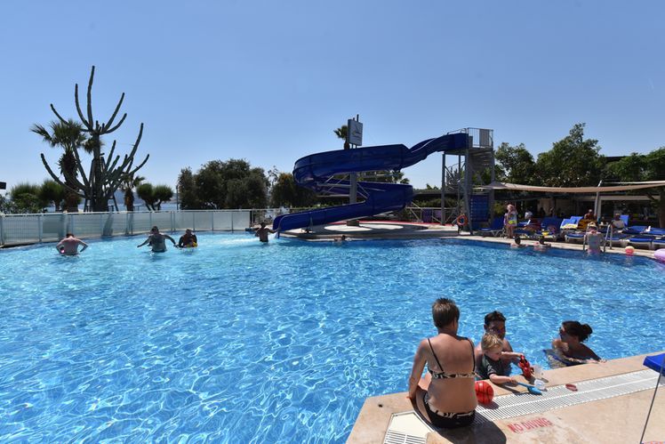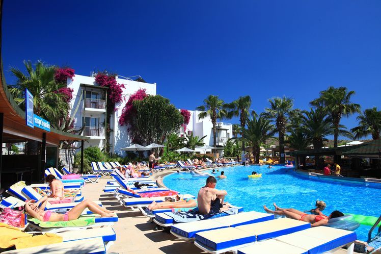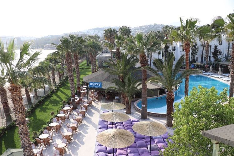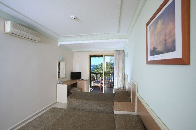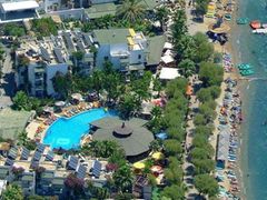 The hotel is located on the beach in the center of Gumbet with local transport passing in front of the property on a regular basis and a taxi stand situated nearby. The cosmopolitan resort of Bodrum, with its large yacht marina and the impressive St Peter’s Castle, are both approximately 3 km away and are definitely worth a visit. There are numerous restaurants, bars, clubs and shops not far from the establishment. Two family-run hotels are combined and operating as a single complex. Their facilities include a common dining room, a charming cafe and A la carte restaurant. There is a good selection of sports and recreation activities and the complex also offers wireless Internet access in the lobby area. The rooms have tiled floors and are equipped with a satellite TV and individually regulated air conditioning.