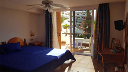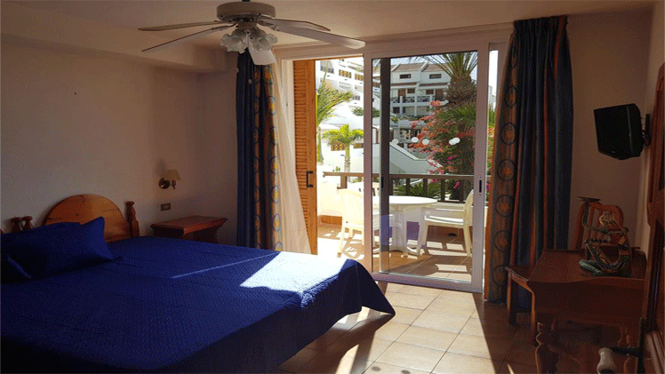 The apart hotel Parque Santiago Tenerife is located in the vicinity of a sandy beachstone beach. The nearest restaurants and bars can be reached in a few minutes on foot. The city centre is also just a few steps away. You can find a range of shops and a supermarket directly on your doorstep. In the vicinity a disco (approx. 3 km away) offers entertainment for holidaymakers. The beach is patrolled by a lifeguard. Here, there are cushions for a fee available. Directly next to the beach there is a promenade where you can take leisurely walks. The hotel has a 24h reception (check-in is possible around the clock), Wi-Fi, a lift, a supermarket and other shops, a boutique, cash machine, a hairdresser, a jacuzzi, showers and changing rooms, a first aid kit, parking spaces as well as a TV lounge with satellite TV. In the outdoor area of the property you will find a garden as well as a seasonally open, heated salt water pool, where sun loungers and sun umbrellas are available for free. For children there is also a children’s pool with a children`s slide.