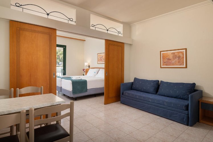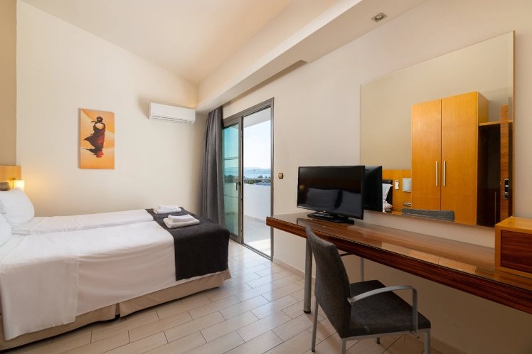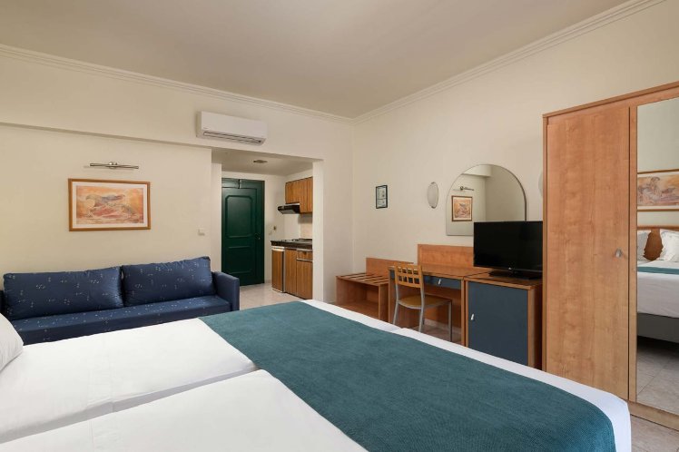 About 600 m from a beach is located the accommodation PEFKOS BEACH. The city centre is only around 200 m away. The hotel is equipped with a lift, a shop, parking spaces as well as a TV lounge. In the outdoor area you will find a garden as well as a pool (open all year). There is also a children's pool. Furthermore, you can relax outdoors on a terrace. You can store your valuables in the safe (extra fee), and your luggage in the hotel`s storage room. For your entertainment, the hotel offers a library/reading room. There is also a laundry service.