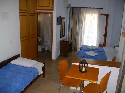 Approx. 70 m from sandy beach is located the hotel Pella House. The city Pefkohori is approx. 300 m away. The nearest shopping facilities are located approx. 50 m from the hotel, a supermarket can be reached after around 20 m. It is only 100 m from the hotel to the nearest bars and restaurants. Also the nearest disco is around 100 m away. For mobility during your holiday, there are a taxi rank (around 60 m away) anda bus stop (approx. 20 m away). For medical treatment in emergencies there is a hospital around 80 km away. The airport (SKG) is approx. 95 km away.