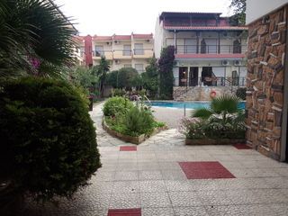 Surrounded by a pine forest, this family-friendly hotel boasts a quiet location in Pefkohori, a tourist town in the peninsula of Kassandra, characterised by its magnificent natural surroundings and the beautiful beaches. The property is located close to the beach and offers excellent traffic connect ions as the bus stop is just in front of the hotel. The guest rooms are all decorated in warm tones, offering a charming ambiance where travellers may rest at ease and enjoy a relaxing holiday. Some of the facilities include air-conditioning, a flat-screen TV and a private balcony. Guests who stay in this hotel may taste authentic local cuisine in the on-site restaurant and the bar is the perfect place to meet up with friends while sipping a refreshing drink. While adults enjoy a relaxing moment on the sun loungers, children may play and have fun in the kids’ pool.Hotel Pelli organises daily boat trips to the beaches of Kassandra, Sithonia and Mount Athos. Thessaloniki International Airport is 90 km away