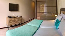 The new suites are approximately 32.45 m² and have a maximum capacity of 3 adults, or 2 adults and 2 children. They include a bedroom with direct access to the garden, bathroom with shower, a room with sofa bed and TV, minibar, coffee machine, citrus juicer, tea kettle and toaster.