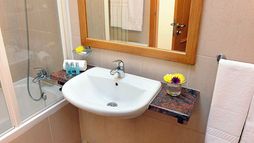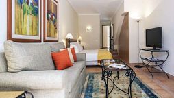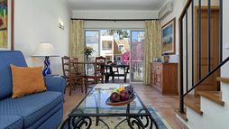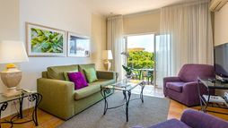 Pestana Palm Gardens Ocean & Golf villas is located on a plateau above the beautiful bay of Praia Vale de Centeanes whose sandy beach can be reached by descending a flight of steps located just 200 meters from the resort. The center of the picturesque fishing village of Carvoeiro is located 1.8Km to the complex. The nearest airport is 60 km away. The complex features a reception, restaurant, tennis court, fitness room, sauna and Beauty and massage facilities. Car parking areas are available and there is free wifi throughout the resort and units of accommodation. Each of the comfortable accommodation units with exception of the Resort Suite has a fully equipped kitchen with washing machine and dishwasher. The Resort Suite has a small kitchenette. The resort has an adults and a children’s swimming pool, parasols and sun loungers. Cleaning is available daily except Sundays and Public Holidays. Linen and towels are changed twice per week. The nearest golf course is about 5 km from the complex and guests staying at Pestana Palm Gardens enjoy preferred green fee rates.