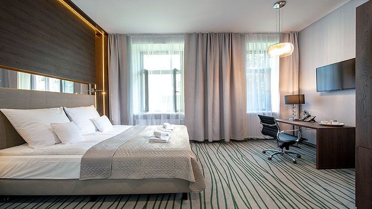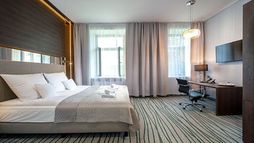 The hotel offers various room types, including single and double rooms in both standard and economy categories, as well as suites. Each room is air-conditioned and equipped with modern amenities like a minibar, ergonomic desk, wardrobe, tea and coffee making facilities, TV, and a private bathroom. The suites provide extra space with separate living and sleeping areas, perfect for a comfortable stay. Deluxe Double Rooms feature a larger floor area and a balcony, while Standard Double Rooms offer flexibility with bed configurations. Economy Double Rooms provide a budget-friendly option without compromising on quality.