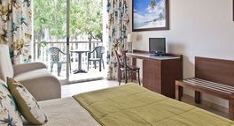 Hotel guests can take a run on the jogging track around the hotel, play on the mini football pitch, or enjoy a game of volleyball. There’s also a pool table and table tennis as well as a heated indoor pool and a fitness and spa area (charged extra). The selection of bars, restaurants, and cafés include a pool bar and offer a wide range of international and Mediterranean favourites.