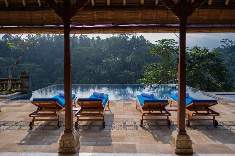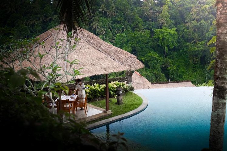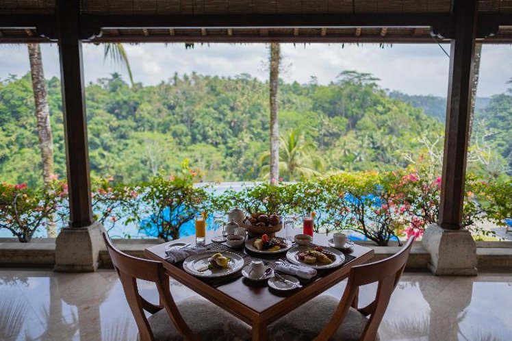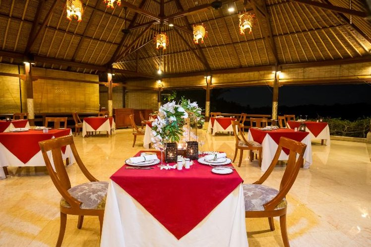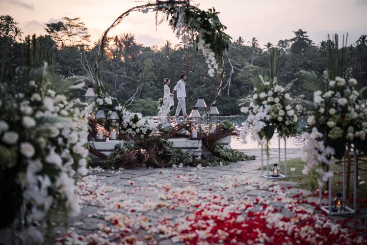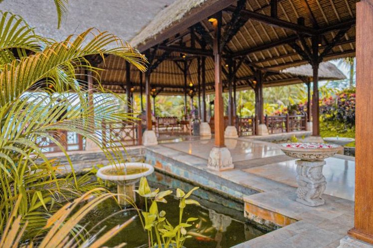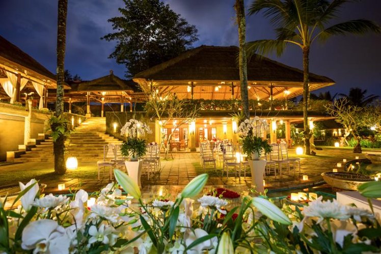 Nestled in the heart of Ubud, overlooking the breathtaking Ayung River, this hotel offers a unique blend of traditional Balinese architecture and modern comfort. Located approximately an hour's drive from Bali Airport, it's the perfect setting for weddings and private events. Each room boasts stunning river views and traditional thatched roofs. Guests can indulge in Indonesian spa treatments and savor diverse culinary experiences. The spacious rooms feature large marble bathrooms and luxurious amenities, promising a peaceful and memorable stay.