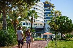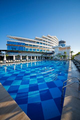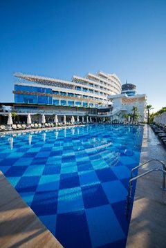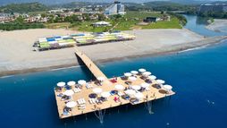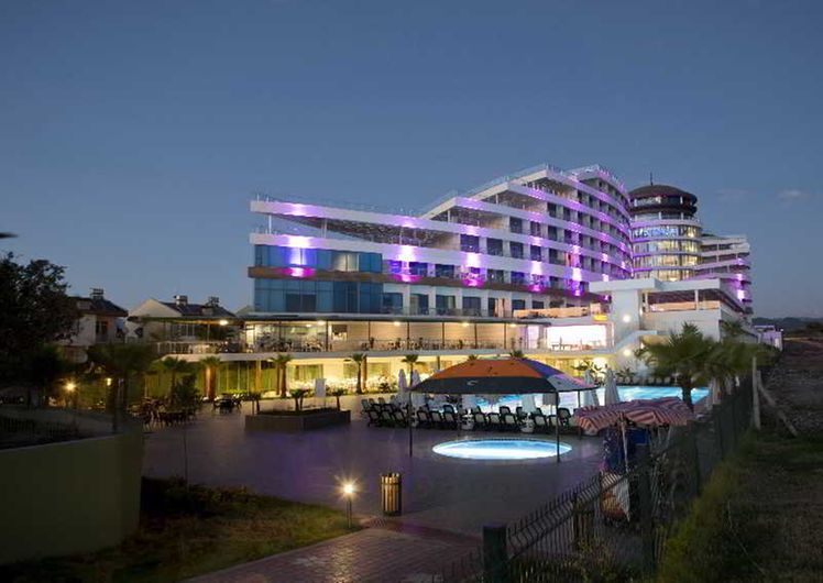 Enjoying a privileged position on Turkey’s Mediterranean coast and within metres of a river, this modern hotel features a host of amenities for guests’ pleasure and enjoyment and is suitable for families and couples alike. The tastefully decorated rooms have a fresh amd contemporary feel and are well equipped. Having direct access to the sandy beach, guests can enjoy the turquoise waters of the Mediterranean and a number of watersports provided locally or choose to lie by one of the large outdoor pools. Public transport runs closeby providing easy access around the area. The town of Manavgat is 22 km away and the resort and anceint ruins of Side are 29 km..