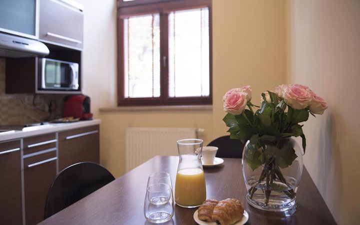 The apartments are the perfect option for families, groups of friends and business travellers who wish to enjoy the city with total independence. They are all elegantly decorated, functionally furnished and given a homely ambiance. They all have a dining area and feature a kitchen equipped with dishwasher, refrigerator and microwave.The staff at the reception will be happy to lend a helping hand in arranging shuttle services and guided tours as well as providing tourist information.On the hotel surroundings guests will find multiple restaurants, bars and cafés.