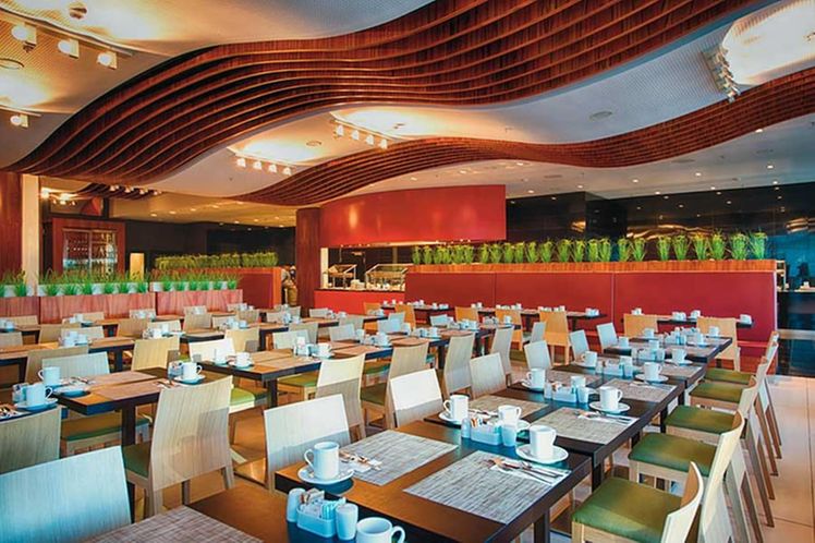 Catering As catering services the hotel offers breakfast only and self-catering. Breakfast is offered from the buffet (extras on request). Lunch and dinner are served as a set meal or à la carte. For the meals, there are a bar as well as the cafeteria.