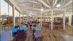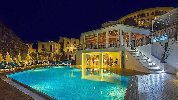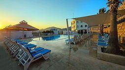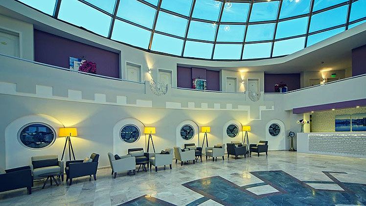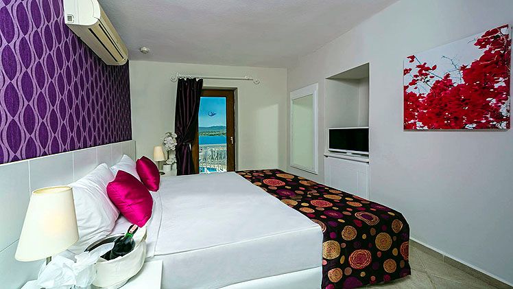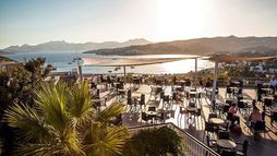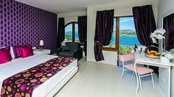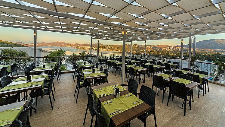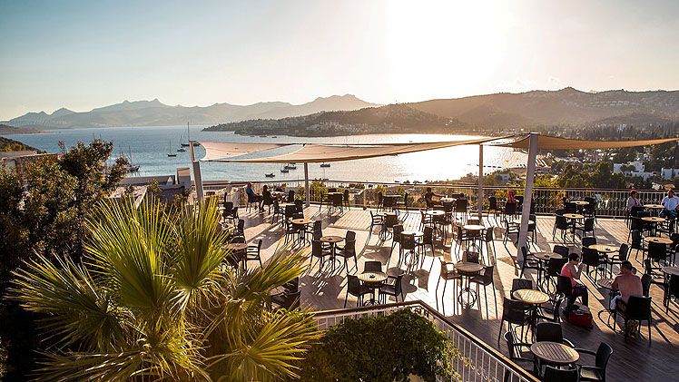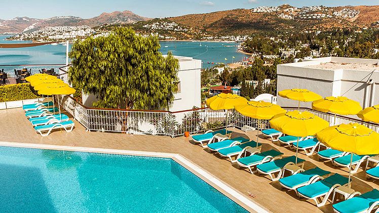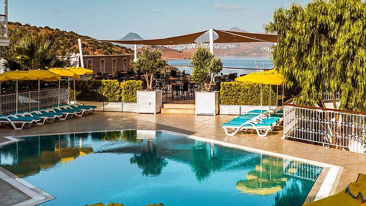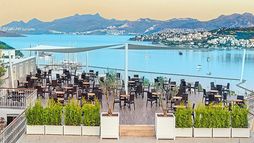 Overlooking the Aegean Sea, the Riva Bodrum Resort (+16) is situated in an elevated position on a hillside between Bitez Bay and Gümbet Bay. The nearest beach is 600 metres away, and the hotel offers a complimentary shuttle service. The city centre of Bodrum with its famous castle housing the Museum for Underwater Archaeology as well as shopping venues and vibrant nightlife is within 4 km. Rooms in the hotel are placed either in a main building with a lovely lobby or low-rise villa-style blocks surrounded by garden; all of the rooms enjoy sea views. Features of the hotel include three large outdoor pools, a sea view restaurant, two pool bars, a snack bar, a mini-market and cinevision. It has a wellness area with fitness centre, sauna and Turkish bath. A tranquil place with nice views, yet within easy reach of the beach.