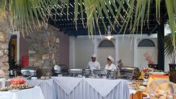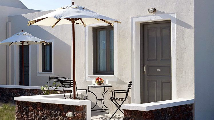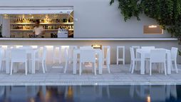 There is an outdoor swimming pool with poolside snack bar and a sun terrace with hot tub and sun loungers and parasols. Sun loungers and parasols are also provided on the nearby rocky beach. A buffet breakfast is served each morning. From the airport, follow the road south to Kamari village (5 km). less Entertainment Sun loungers Parasols TV lounge Services Mobile phone coverage Medical service Hotel safe Garden Sun terrace