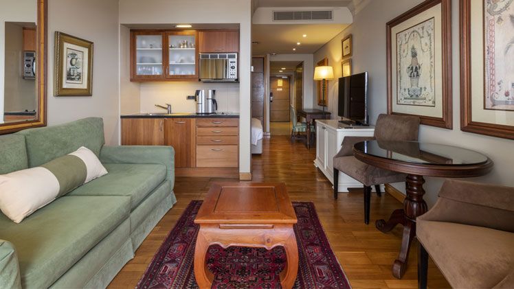There’s nothing standard about the rooms at this chic hotel with their magnificent views, exotic decor and complimentary amenities. Each suite is equipped with high-speed Wi-Fi, premium TV channels, free toiletries, a mini bar, bathrobes and air-conditioning.