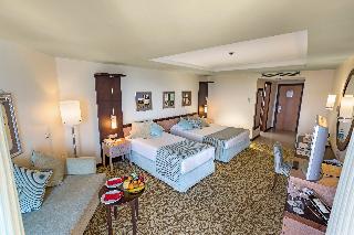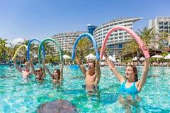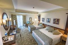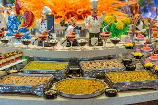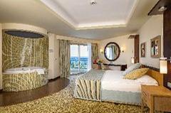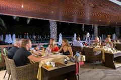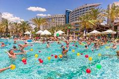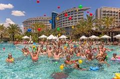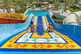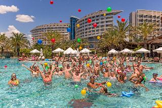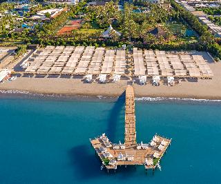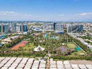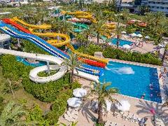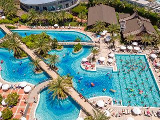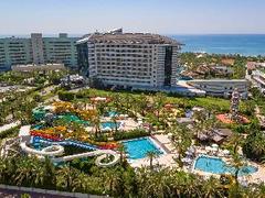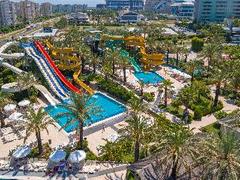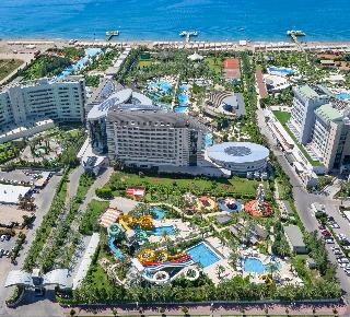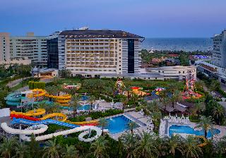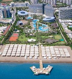 Opened in 2005, the fantastic modern Royal Wings hotel is situated on 72,000 m2 of an extraordinary garden and pool landscape front line to the beach and the warm waters of the Mediterranean Sea. The city center of Antalya is only 17 km away, while the international airport can be reached within a short drive. The hotel excels in every aspect: it features various pools including a vast lagoon-style pool, the largest of the Lara region with more than 3,000 m2. Children will love the children’s pools with slides and animation as well as the mini club with cinema, mini disco and a host of other activities. Guests can spoil their taste buds in a buffet and various delicious a la carte restaurants, while 9 bars invite to have a drink. Excellent sports facilities including a bowling alley, an amphitheatre for 1,000 people and a wonderful spa & wellness area complete the offer.
