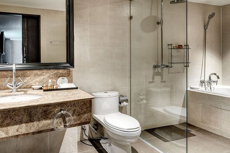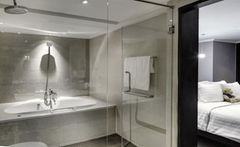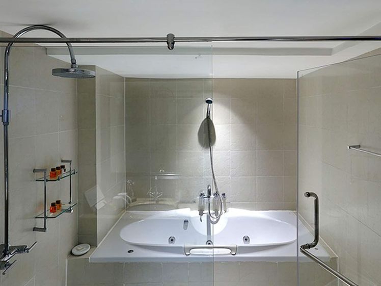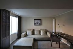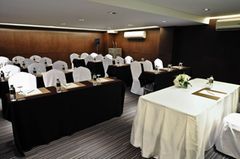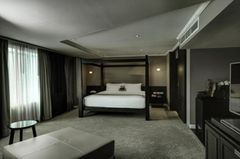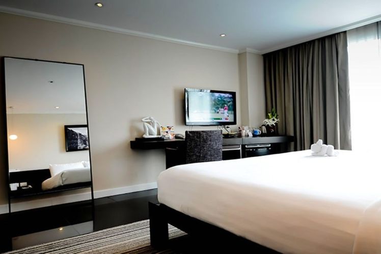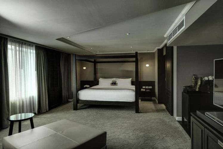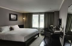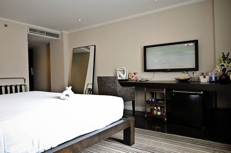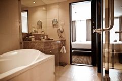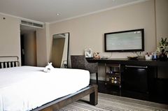The stylish and contemporary rooms and suites range from deluxe to junior hot tub suite. Each is furnished with dark woods contrasting with soft, earth tones and bronze accents, and comes with a delightful welcome fruit plate, en suite bathroom with rain shower, free Wi-Fi, and complimentary coffee, tea and bottled drinking water. After a tiring day of meetings or sightseeing, guests might relax with a traditional Thai massage in the spa or workout in the gym. The onsite café serves a buffet breakfast and lunch, and the hotel offers 24-hour room service, all for a delightful city break or dynamic business trip in Bangkok.
