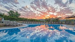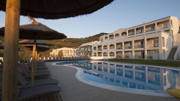 The Saint George Palace is a modern hotel set in the north-west of Corfu, in the traditional village of Saint George of Pagi. Surrounded by Mediterranean vegetation, olive groves and carefully landscaped gardens, the hotel presents a contemporary design with a welcoming feel for families, couples, and groups. It combines comfortable accommodation with a wide range of facilities, all just a short distance from the long sandy bay with its crystal-clear waters. Guests can enjoy relaxing poolside, exploring the surrounding countryside, or discovering nearby villages and beaches.