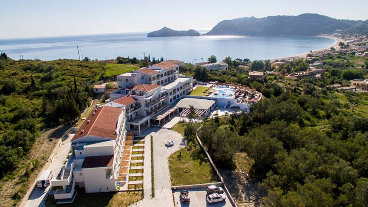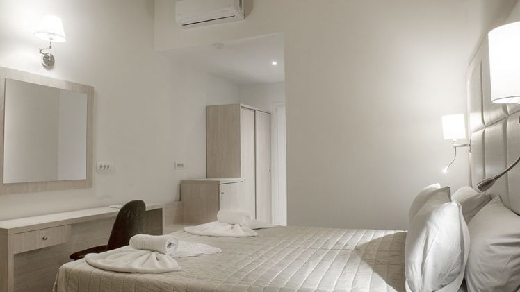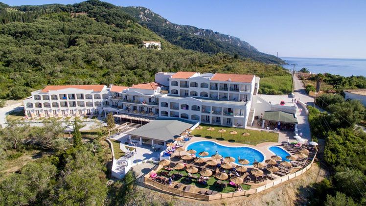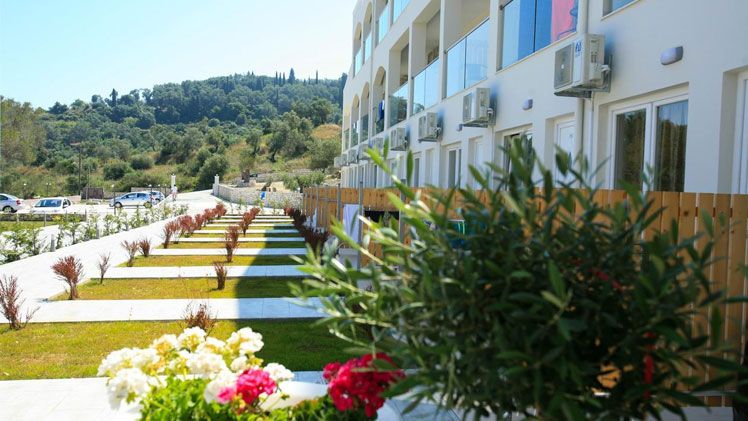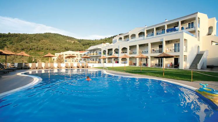 The hotel is situated around 150 metres from the beach and approximately 300 metres from the centre of Saint George village. A bus station is conveniently located just 100 metres away, making it easy to explore further across the island. Corfu Town is about 30 kilometres away, while Corfu Airport is around 32 kilometres from the property. The hotel’s position offers scenic views stretching towards the Adriatic Sea, with the small Diapontia Islands visible offshore.