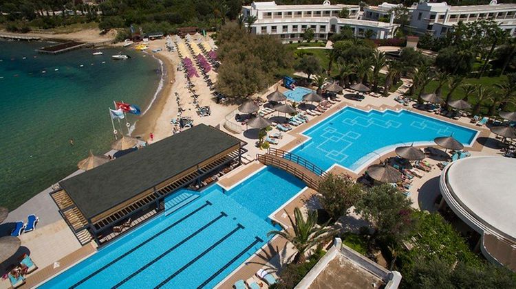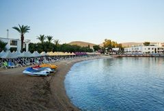 In the vicinity of a private sandy beach is located the hotel Samara Hotel. At the beach are sun loungers and sun umbrellas free of charge available. The nearest town is Bodrum.