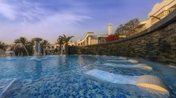 In the outdoor area of the hotel you will find 2 fresh water pools with a children´s pool. Here, there are sun umbrellas and sun loungers for free available. A bar at the pool offers guests refreshing beverages.