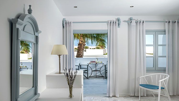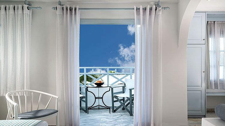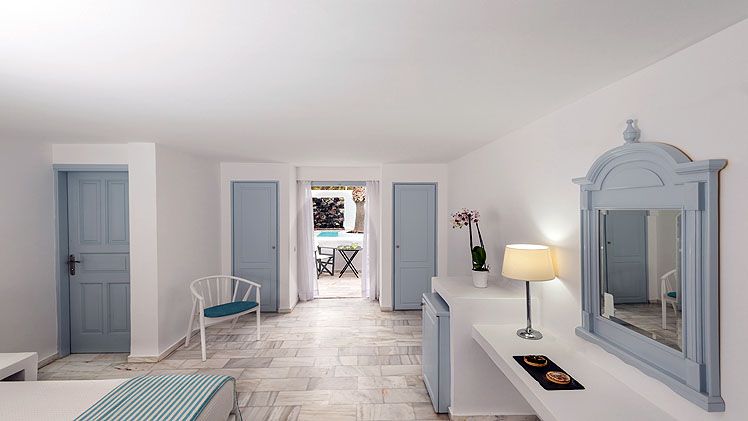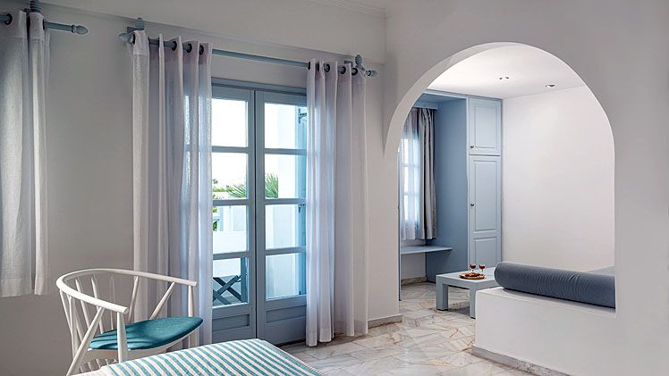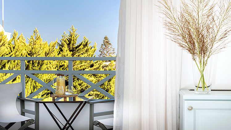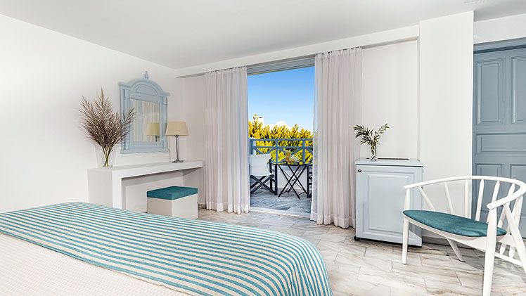 Classic Double Room – The traditionally decorated Classic Double Rooms are a perfect choice for two people. Airy and bright interiors, the rooms are arranged with a comfy queen-sized bed and a spacious mosaic bathroom with a shower. Step out onto your own private balcony or terrace for the fresh island air and enjoy the view.