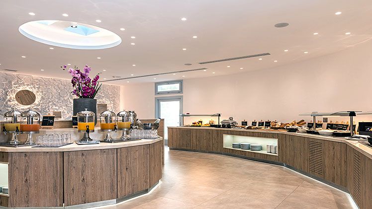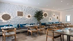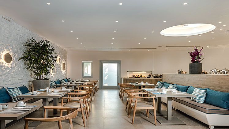 The open-air ‘Lydia’ restaurant is located right alongside the main pool area. Set in a relaxed atmosphere of casual sophistication. Offering a selection of Greek Mediterranean cuisine with divinely delicious dishes that are masterfully prepared with locally sourced ingredients of the highest quality. Starting for Breakfast, the restaurant served a delightful American Breakfast under the shade of the pergolas. A scrumptious lunch is served midday before romantic candlelit dinners are served by the pool.