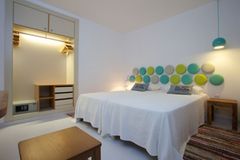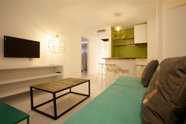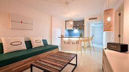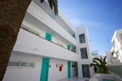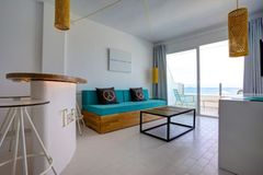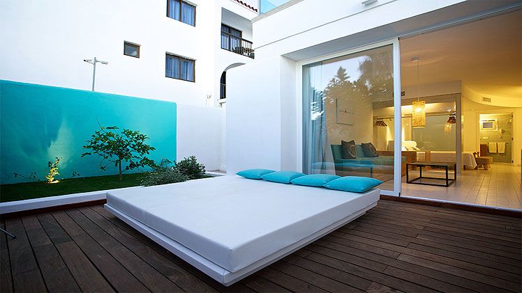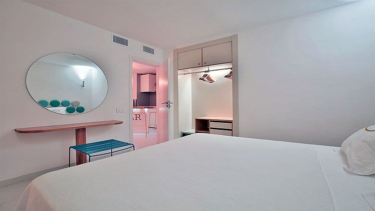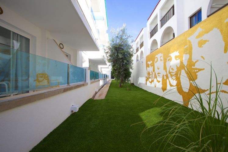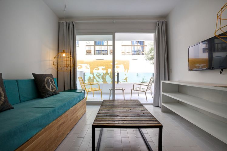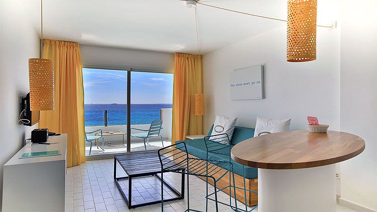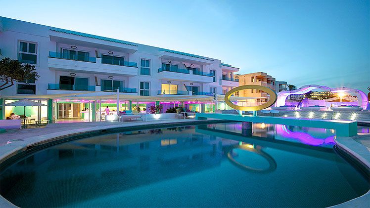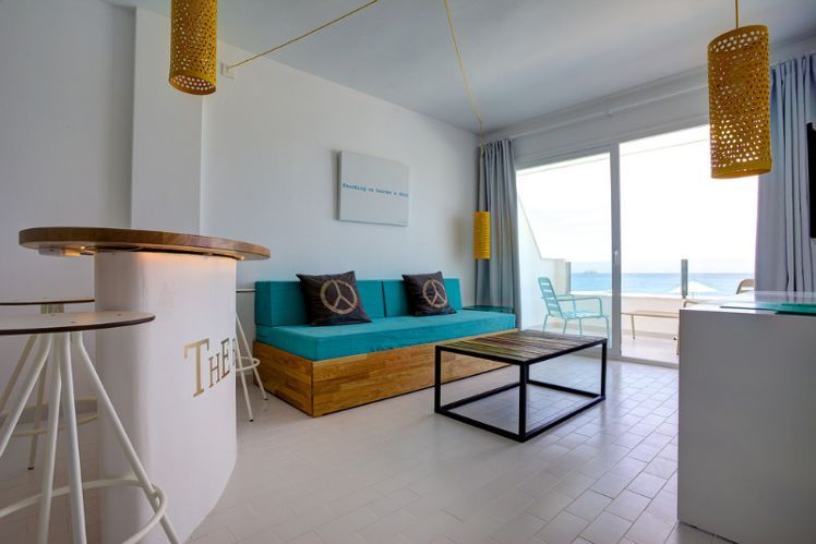 This apartment complex is located in the first sea line in Playa d’en Bossa. In the immediate vicinity guests will find numerous shops, bars, restaurants and cafes. The links to the public transport are situated within a few meters from the hotel. The revolutionary concept of the establishment breaks all the topics of Ibiza. This is the first settlement of the island pure trend. Visitors may rescue the best of the Pitiusa’s tradition and pass through the filter of relaxed luxury, one rabidly contemporary interior. Guests can also enjoy music, events and parties in a privileged environment.