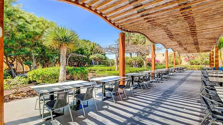 This hotel lies right on a magnificent sandy beach on the Costa Calma. The Sotavento shopping center is located directly in front of the hotel. There is an abundance of shops, restaurants and entertainment venues in the immediate vicinity. Convenient public transport links are within 200 m of the hotel.The hotel was built in 1986 and renovated in 1998 and consists of a total of 266 double rooms on 2 floors. Facilities include a lobby, a bar and a public Internet terminal. Use of a car park and garage is also available. The hotel also offers its own restaurant. There is a laundry service available to round off the hotel’s facilities.The rooms are fitted with an en suite bathroom, a hairdryer, a telephone, satellite/ cable TV, a radio, a fridge, a safe and a balcony or a terrace.In the pleasant outdoor complex, guests are invited to make use of the 2 swimming pool with a paddling pool, a poolside snack bar in addition to sun loungers and parasols. Additionally, there is a sauna within the hotel. For an additional fee, guests may play a game of tennis or squash, or partake in gymnastics. Further possibilities include a game of bocce, an attempt at archery or a visit to the gym. The hotel also provides an entertainment program me to ensure there is never a dull moment.Individual buffets are on offer in the mornings and evenings. It is also possible to book a half-board stay.