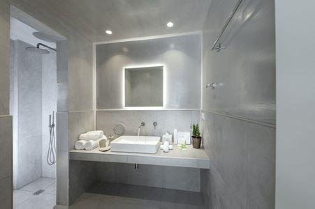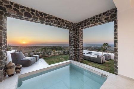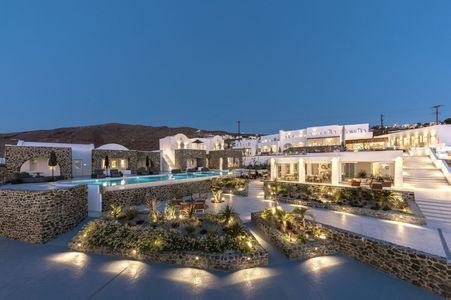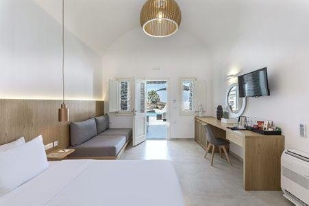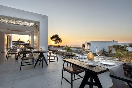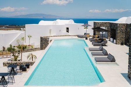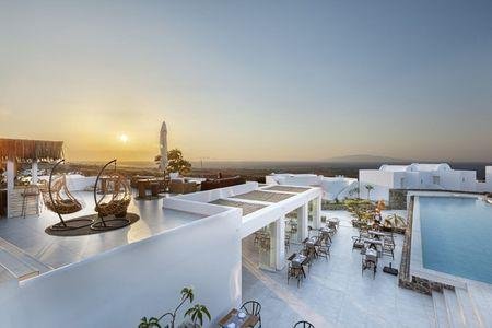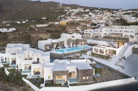 The hotel Secret View Hotel, especially popular with honeymooners, is located around 2 km from Oia (Imerovigli around 8 km, Fira around 15 km). The nearest beach is around 4 km from the hotel. The tourist centre is about 2 km away. You can find a food store and other shopping facilities approx. 2 km away. It is 2 km from the hotel to the nearest bars and restaurants. For evening dancing you will find a nightclub in a distance of approx. 16 km. Further entertainment facilities such as a cinema are approx. 18 km away. The following attractions can be reached from the hotel: Lost Atlantis Experience - Interactive Museum (approx. 20 km away), Ancient Thera (approx. 18 km away), Akrotiri museum (approx. 23 km away), Skaros Rock (approx. 9 km away) and Megalochori (approx. 18 km away). For mobility during your holiday, there are a taxi rank (around 2 km away), a bus stop (approx. 450 m away), a car rental company and a motorcycle rental. For medical treatment in emergencies there is a hospital around 16 km away. The airport (JTR) is approx. 17 km away.