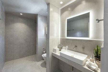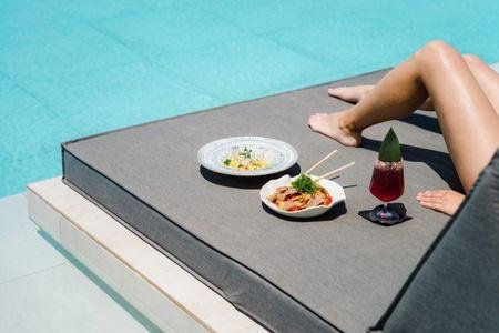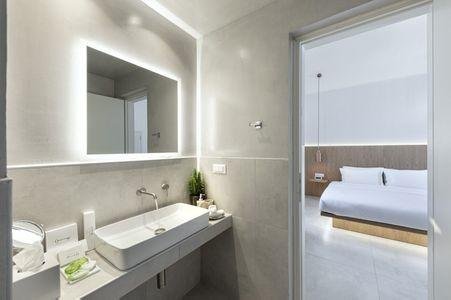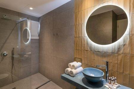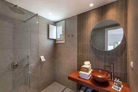 The modern furnished rooms are equipped with double bed, extra bed (sofa bed), baby cot (for free), tiled floor, kettle (for free), minibar (for a fee), capsule coffee machine (for free), private pool, shared pool, internet (for free), safe (for free) and sat TV with local broadcasters as well as centrally controlled air conditioning (from April to October). Bathroom with shower (room size: 30 - 35 m²). Towels are changed daily (free of charge). Bed linen is changed (free of charge).