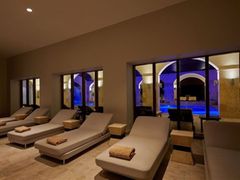 In the outdoor area of the modern hotel, you will find 4 heatable pools. Here, there are sun umbrellas and sun loungers for free available. Refreshing beverages can be consumed directly at the pool bar.