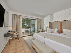 The 8-storey beach hotel consists of the main building and an adjoining building and has 335 rooms in total. It is equipped with a 24h reception, a lobby with bar, 8 lifts, and air conditioning, a safe (for free), a parking area (for free), a security entry system as well as a money changing facility. For the meals, there are 6 restaurants (air-conditioned) and a snack bar. In a total of 6 bars, you can relax in the evening in good company. WiFi is available for free. For guests with physical disabilities, the hotel has barrier-free access. Room cleaning is free of charge. Room service and laundry/ironing service are available for a fee.