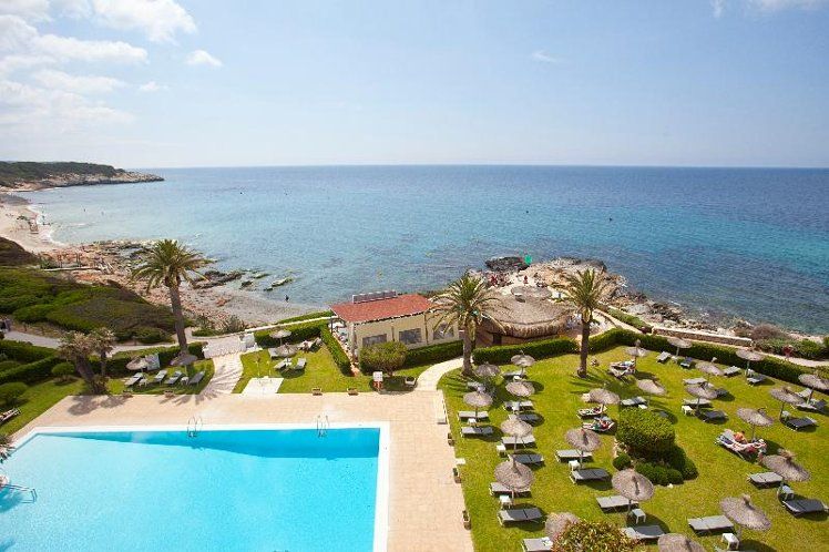 The Santo Tomás Hotel is right on the sea promenade in the quiet residential area of Santo Tomás, located on the south coast of the island of Minorca. It is just 25 km from the airport and one of the main two towns (Maó and Ciutadella). The nearest town, Es Migjorn Gran, is just 4 km away. Its superior four star hotel quality and variety of amenities, in one of the most beautiful spots in Minorca, make the hotel an excellent choice for relaxing holidays.