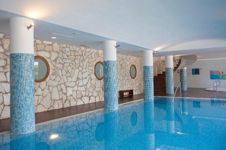 The hotel has an indoor heated swimming pool, hot tub, sauna, steam bath, massage and treatment cabins, bar cafeteria, buffet restaurant and a barbeque restaurant on the seaside. The garden has an enjoyable swimming pool and terrace with excellent views of the beach.