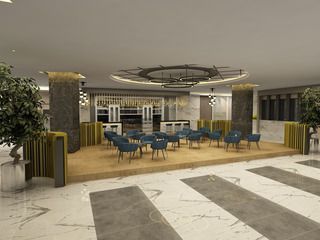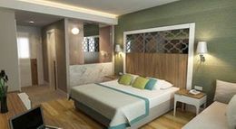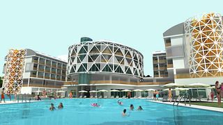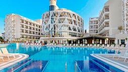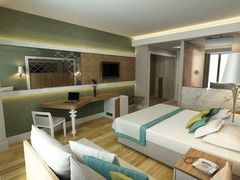 The hotel is located in the Evrenseki region. The beach and the Mediterranean are 400 m away. Public transport links are within a 10-minute walk. Antalya Airport is approximately 50 km away. This modern hotel offers a range of facilities which include restaurants, shops and a hairdresser’s saloon. Guests can make use of the games room, TV lounge, café, bar and disco. A kids’ club is also available, and business travellers can take advantage of the conference facilities. The hotel offers wireless Internet access and a car park. All rooms feature an bathroom, satellite/cable TV and Internet access, air conditioning and tea/coffee making facilities. The hotel has a light activities programme and offers a SPA centre, sauna, steam room and Turkish bath. In addition, there are 2 pools, one of which is heated.