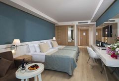 Flaunting rich a la carte restaurants, endless entertainment and three mini clubs, your unforgettable holiday starts here. You can’t help but be enticed by this stand-out accommodation with its trio of pools accessorised with slides, contemporary rooms with fancy mod-cons and superior facilities including Wi-Fi, Turkish baths and sports courts.