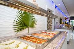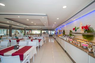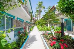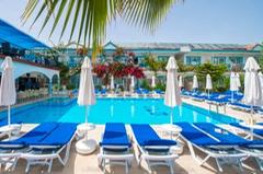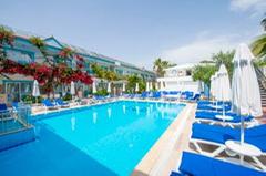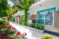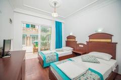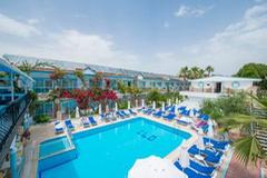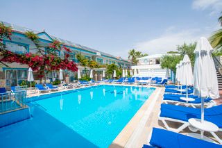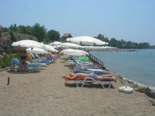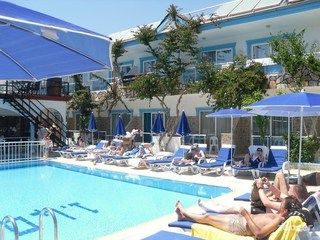 This hotel is located in the suburbs of Side on the Turkish Riviera. The tourist area of the resort with a wide range of entertainment venues is only 800 m away. The nearest fine sandy beach is just 150 m. away and the sea is shallow. The impressive ancient ruins of the area are also within a few minutes of the hotel. There is a stop for the public transport in the hotel’s vicinity. The transfer time to Antalya airport is around 1 hour (approximately 70 km). Newly opened in 2004, this beach hotel comprises 93 accommodation units spread over 2 floors. All units are nicely furnished and come with a balcony. Leisure options include a swimming pool with a children’s area designed to provide fun for the whole family. Hotel guests are also able to play darts,table tennis,chess and beach volleyball, whilst a range of water sports are available on the beach. The hotel also provides an ideal point for hiking, cycling and horseback riding.