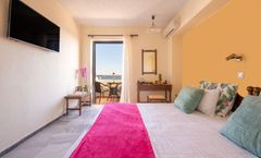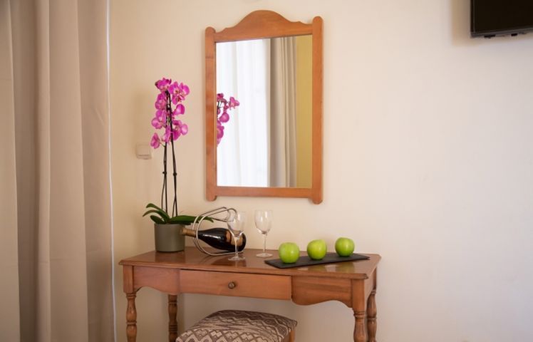 The hotel Finata Studios (adults only) is located right on a sandy beach. At the beach, there are sun umbrellas and sun loungers for a fee available. The tourist centre is only about 100 m away. The town Kavos is around 100 m away (Corfu Town around 45 km). A supermarket can be reached after around 100 m. There are restaurants and bars within a very short distance of the hotel. Also the nearest disco is around 50 m away. For mobility during your holiday, there are a taxi rank (around 200 m away) and a bus stop (approx. 150 m away). For medical treatment in emergencies there is a hospital around 48 km away. The airport (CFU) is approx. 42 km away.