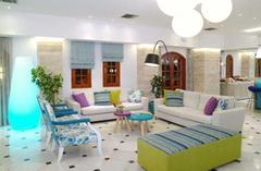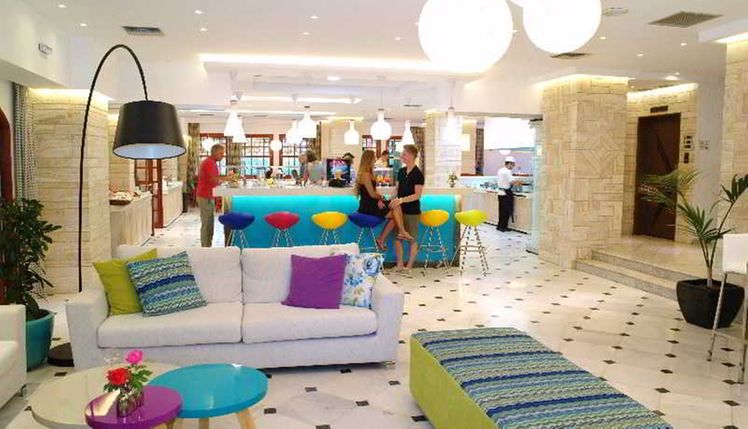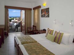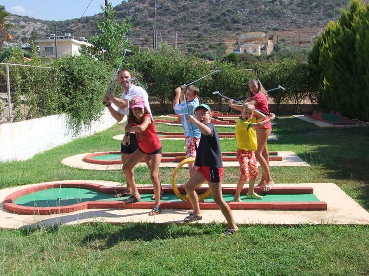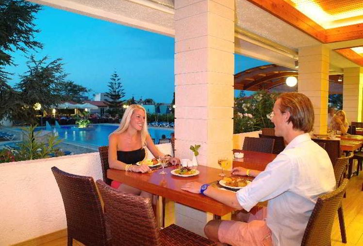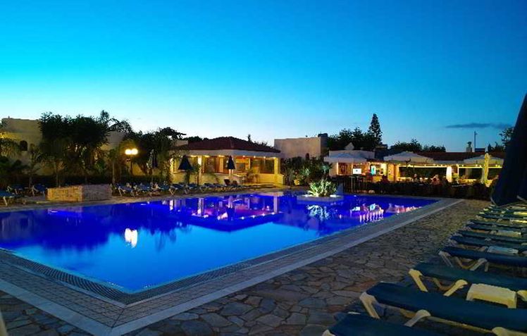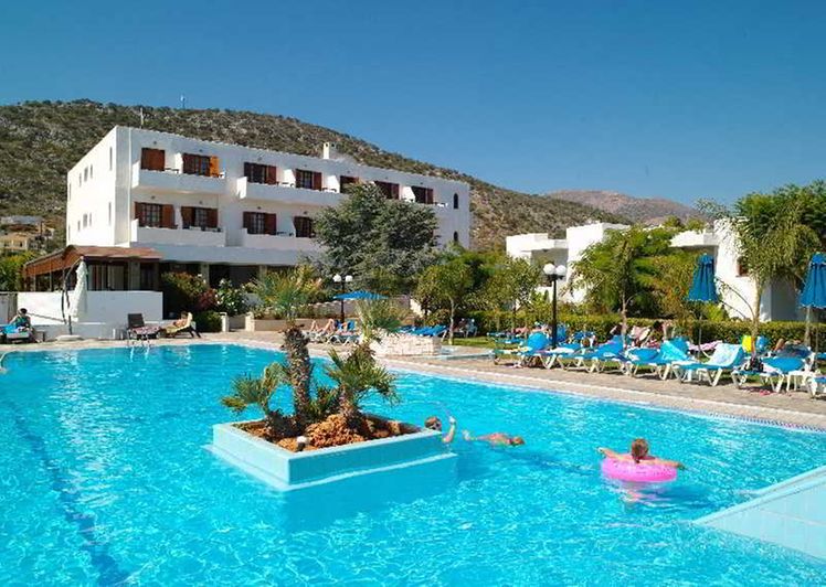 The hotel is situated 32 km east of Heraklion airport between Malia and Stalida. Just 200 m from the entrance is one of Crete’s most beautiful beaches. There is a bus station 150 m from the hotel, where there are buses going to Heraklion and Agios Nikolaos. Malia Town is 1 km away, Hersonissos is 8 km away, Heraklion is 35 km away and Agios Nikolaos is 25 km from the hotel.The hotel consists of a main building and 6 bungalow buildings spread throughout the lush gardens, and has 134 rooms altogether. The main building features a friendly reception area, an elegant lobby, a dining room with a veranda overlooking the pool and a main bar. In addition, there are 2 lifts, and a free parking lot for guests, along with a children’s playground and a small supermarket.Guests can choose between a room in the main building or a bungalow. In the main building guests can enjoy the magnificent view of the pool and the Mediterranean sea, whereas in the bungalows guests are able to take advantage of the privacy, the peacefulness and the traditional architecture. All rooms (25m² in size) have been recently renovated and tastefully decorated, and include a WC/bath, balcony or terrace, satellite TV-radio (18 channels), individual air conditioning, hairdryer, direct dial telephone, telephone in the bathroom, fridge and safe deposit box. Family suites (38m² in size), accommodating up to 5 persons, are very elegant and modern, with 2 separate bedrooms and a large bathroom and also offer exactly the same amenities as the double rooms.