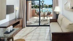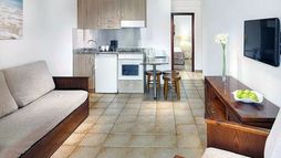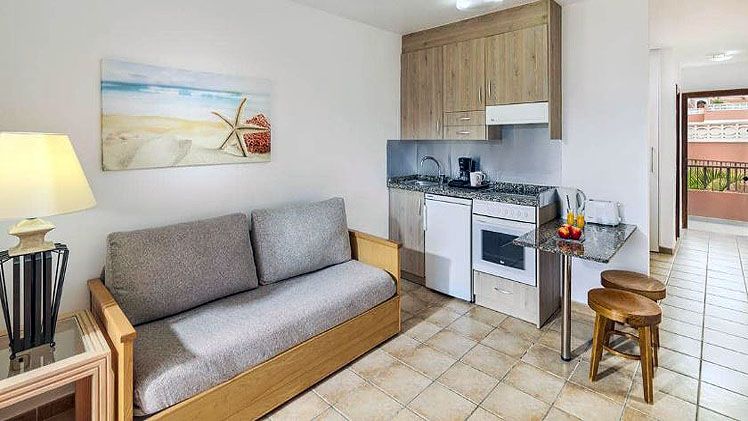 This popular apartment complex lies just across the promenade and a shopping centre of Playa Fañabe. The town centre with countless restaurants, bars and shopping venues as well as exiting nightlife venues is a mere 2 km away whilst links to the public transport network are just 200 m away. Puerto Colón’s beautiful marina is a mere 400 m from the hotel and offers a range of entertainment options. Guests are offered a supermarket, a selection of shops, a restaurant as well as a bar. Each of the charming units comes with a combined lounge/ bedroom area, a bathroom with a shower and a dining area with a kitchenette, and a balcony or terrace. The apartments additionally feature a separate bedroom. The apartment complex features a palm tree-lined pool complex with a children’s area. There is a sun terrace where sun loungers and parasols have been laid ready for use.