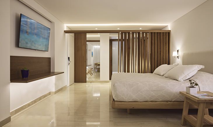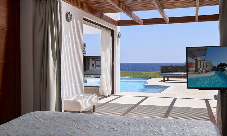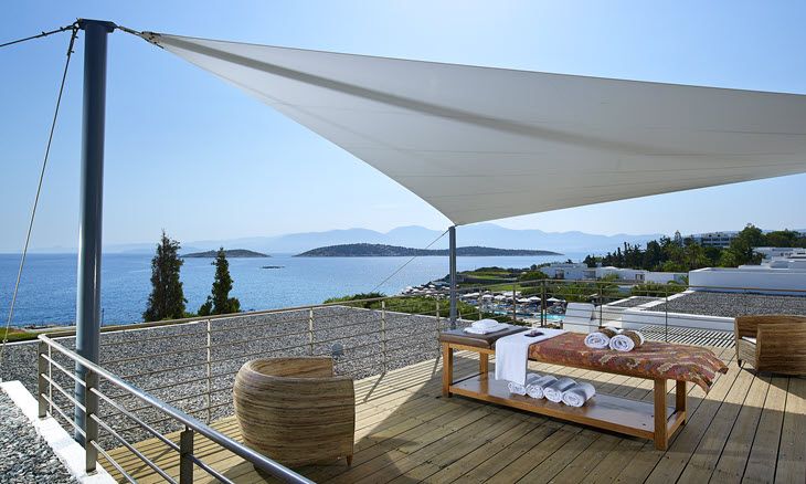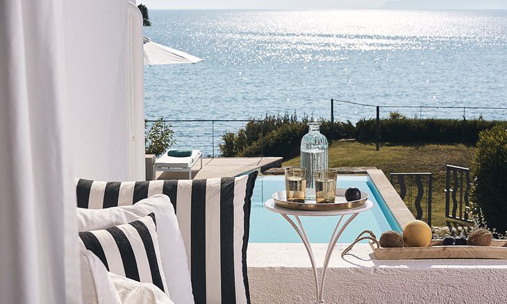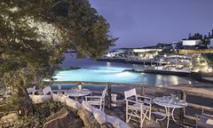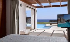 Accommodation ranges from classic doubles and junior suites to multi-bedroom family suites, premium Club Studio Suites, the newly introduced Olives & Sea Suites, and individually designed Thalassa Villas. All Rooms and suites feature modern, spacious interiors with marble-lined bathrooms, smart televisions, individually controlled air-conditioning, minibar options, and complimentary tea and coffee facilities; bedding choices and a pillow menu are offered. Many units provide private outdoor spaces such as verandas or terraces, and selected categories include private pools or outdoor hydromassage hot tubs. The Thalassa Villas are presented as fully refurbished waterfront properties with private infinity pools, open-plan living areas and direct access to the sea, supported by a dedicated personal concierge and elevated in-villa services. With this range of accommodation, the hotel is perfect for couples, friends and families seeking comfort, privacy, and luxury.